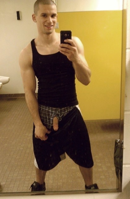 After the pic I posted the other night of that really hot and slightly rough looking boy in the mens room showing off his cock hanging out of his shorts I found this one tonight and knew I had to share it here. Maybe it's just a thing I never knew I liked? I don't care where it started really, it's just hot to see a guy showing off his dick like that ;)